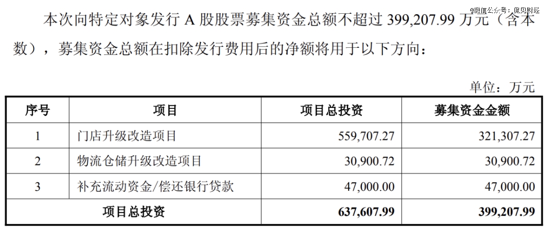 而按照此次永辉超市的定增方案,39.92亿元的募资金额,32.13亿元将用于298家门店的调改升级,3.09亿元用于物流仓储升级改造项目,4.70亿元用于补充流动资金或偿还银行贷款。