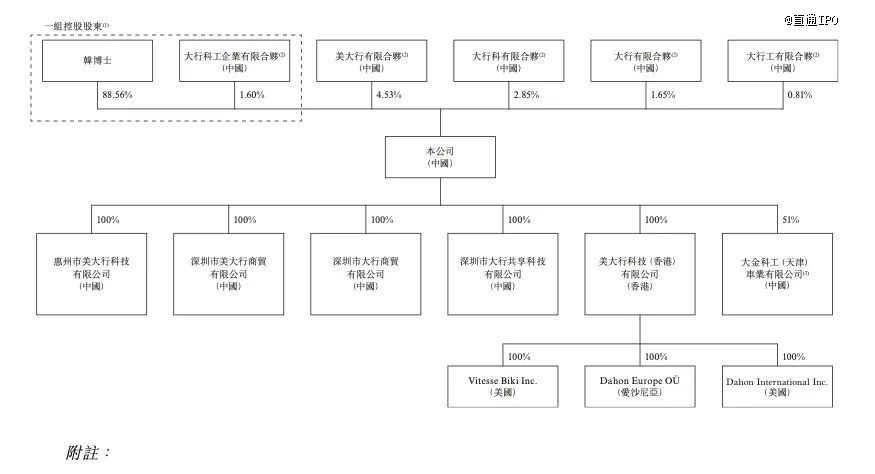IPO前,大行创始人、董事长、总经理韩德玮博士直接持有88.56%股份,其担任GP的大行科工企业有限合伙持股1.60%。此外,四个员工持股平台分别持股4.53%、2.85%、1.65%、0.81%。