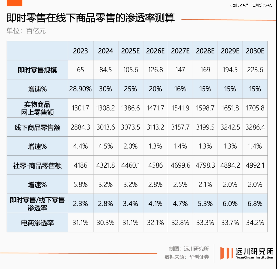 按照各大券商的测算,即便最乐观的估计,即时零售的渗透率也很难超过10%。