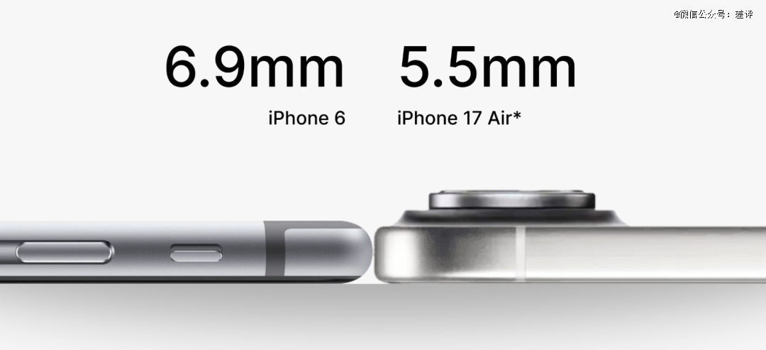 要说在这四款机型当中,争议*、也最抓眼球的选手,那肯定要属 iPhone 17 Air,苹果推出这款机型的目标很明确,就是要做史上最轻薄的 iPhone!