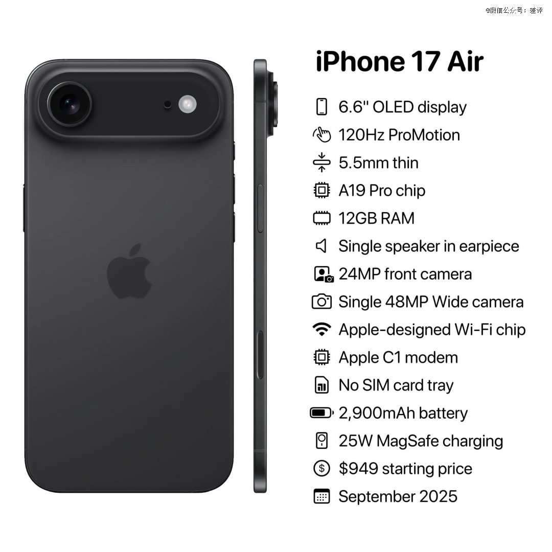有一说一,今年苹果这路子是真够野的,卖了好几年的 Plus 机型说砍就砍,反手就空投了一款主打轻薄设计、并且大概率不会在大陆卖的神奇机型 —— “ iPhone 17 Air ”。