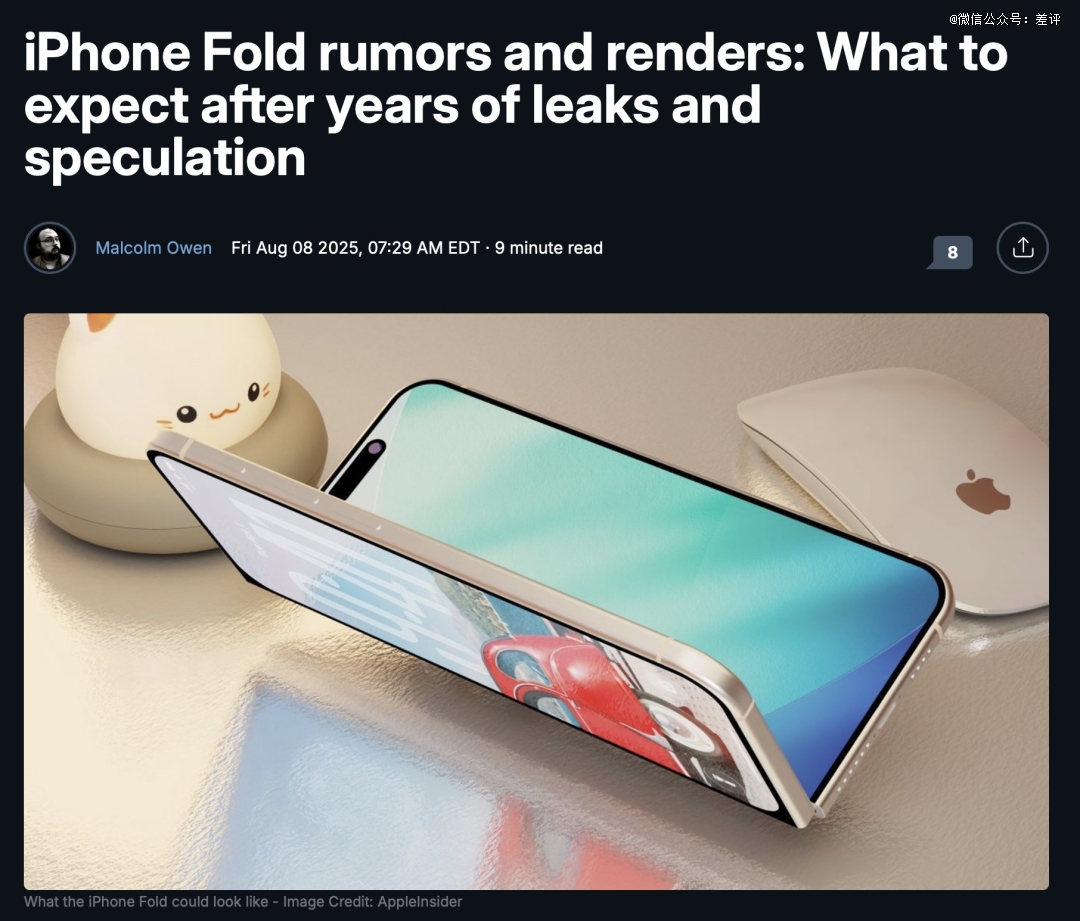 对了,我看到目前网上还有一种说法,说苹果推出 iPhone 17 Air,其实是为了提前给明年自家折叠屏手机铺路。