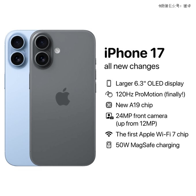 iPhone 17 砍掉 Plus 新增 Air,标准版终于喜迎上高刷;