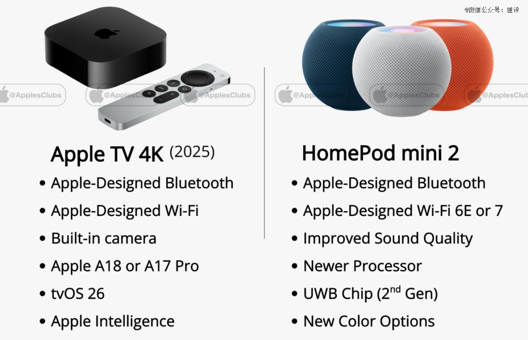 比如 AirTag 2,直接把 UWB 芯片给升级了,追踪精度和范围据说比前代提升不少;Apple TV 4K,影音解码能力迎来强化,估计播放高帧率 HDR 片源会更丝滑,而且深度整合了 HomeKit。