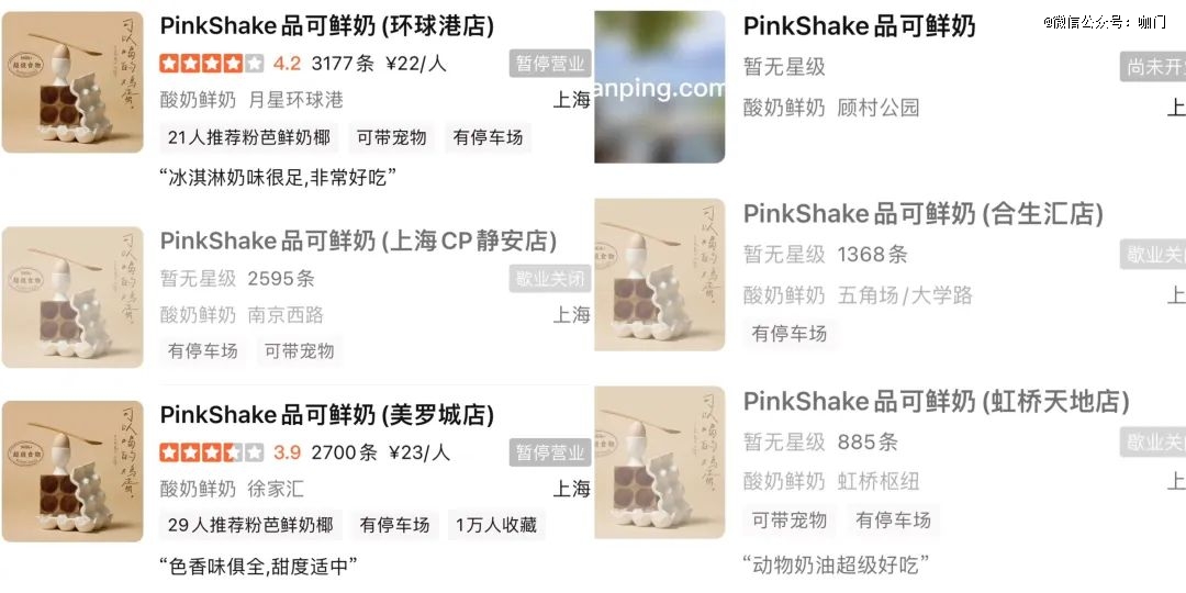 最近,上海奶饮品牌PinkShake品可鲜奶,一夜之间关闭了全国所有门店。