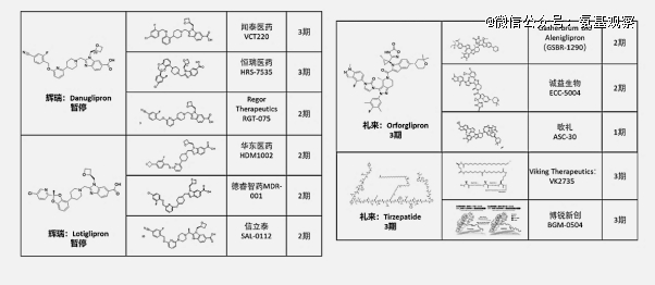 值得注意的是,辉瑞Lotiglipron和Danuglipron已经因为肝毒性等安全性问题退场。以这两类分子为基础所改造的药品,在后线临床试验中会不会重蹈覆辙,是一个必须关注的问题。