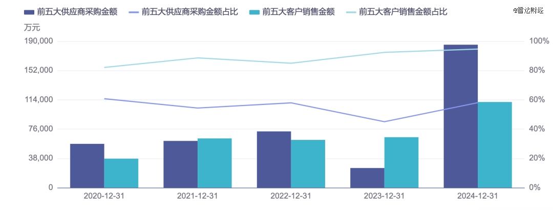 此外,寒武纪的商业模式还存在客户集中度较高的隐忧。同花顺iFind数据显示,2020年至2024年,公司前五大客户贡献的收入占比均维持在80%以上的水准,而这种对少数大客户的高度依赖,使得公司的营收结构显得相对脆弱。
