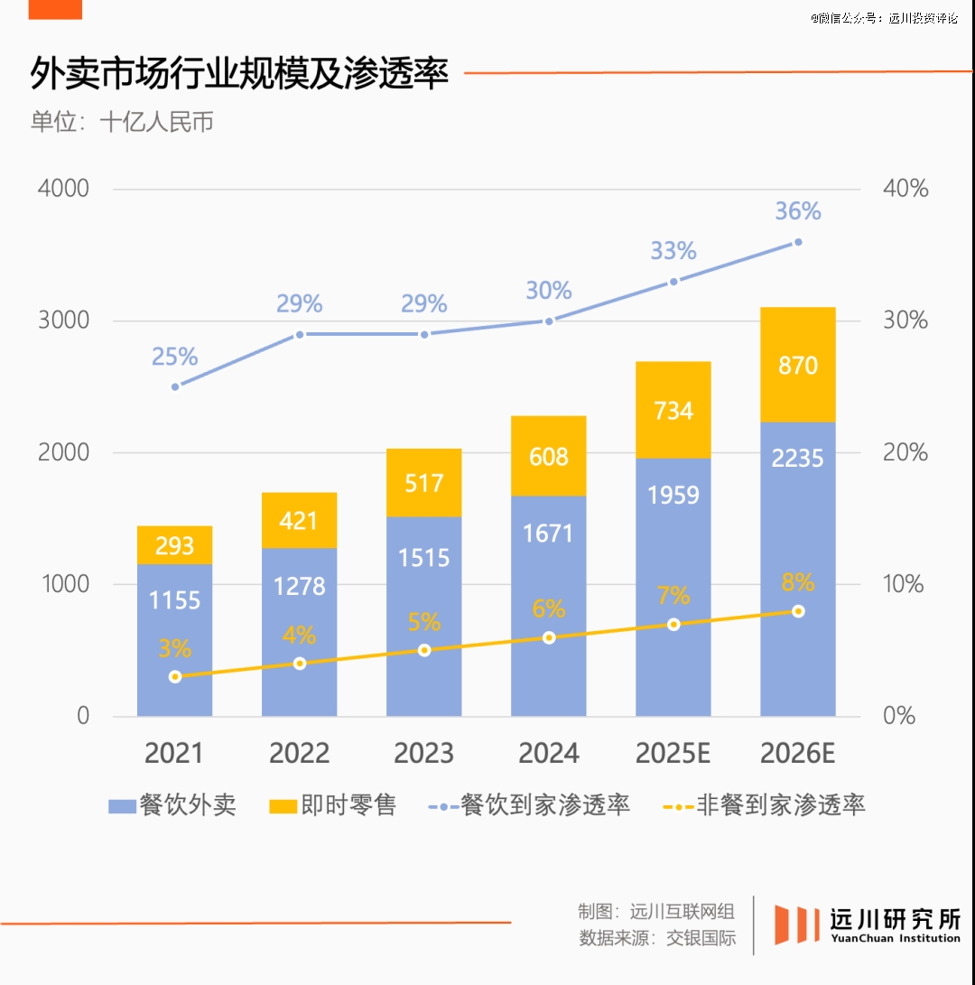 2023年,即时零售市场规模达到6500亿,是同期社区团购的两倍[11][12]。到了今年,京东与淘宝闪购强势进场,平台意志主导下的补贴大战,直接把三大平台的即时零售(含餐饮与非餐)的单日总订单量冲破两亿量级。