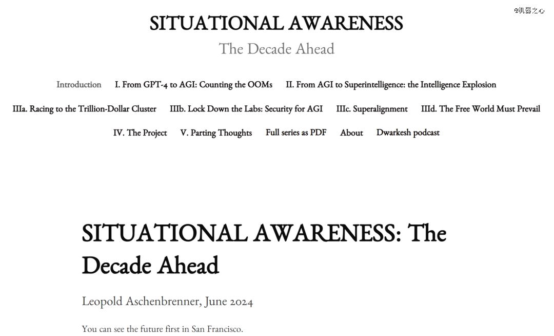 两个月后,他发布了一篇 165 页的分析文章《Situational Awareness: The Decade Ahead》,在硅谷引发广泛关注。