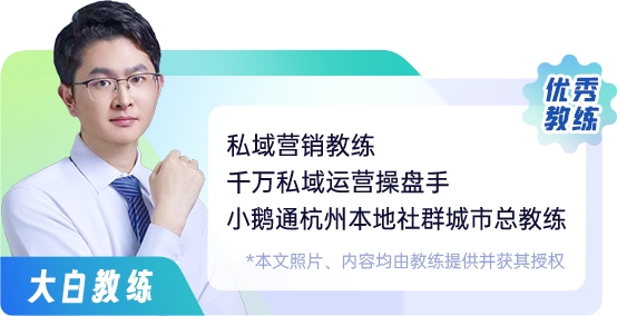 在私域运营赛道,有人靠方法论赢一时,有人靠“懂人”走长远。小鹅通杭州本地社群总教练大白,显然是后者。从室内设计到销售,再到深耕私域9年的实战派教练,他带着跨界底色闯出了独特路径:领跑270个社群实现100%好评,打磨超100套私域运营SOP,新粉转化率常年稳定在60%以上。