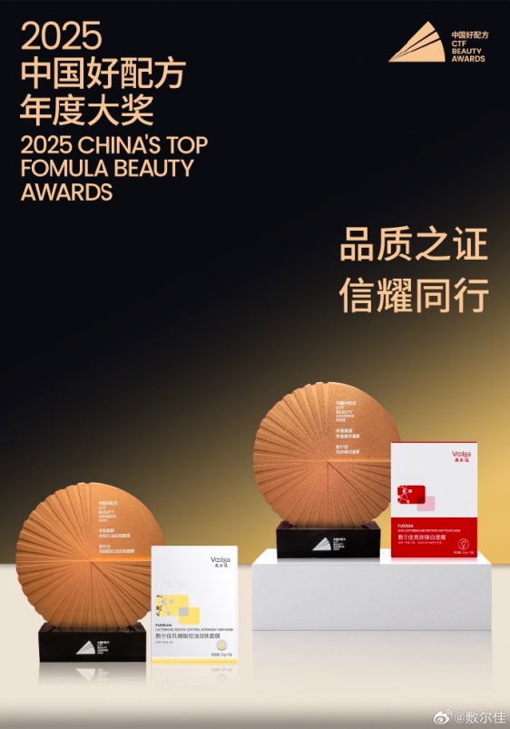 “中国好配方”奖被誉为中国化妆品行业的“奥斯卡”,以其科学严谨的评审标准和权威专业的评委团队著称。奖项评选经过产品盲测、成分分析、功效验证、市场调研和专家评审等多重环节,从众多参赛产品中最终遴选出各品类年度最 佳。敷尔佳能够同时获得两项大奖,充分证明了其产品在配方创新、成分研究、功效验证及用户体验等多方面的综合实力。