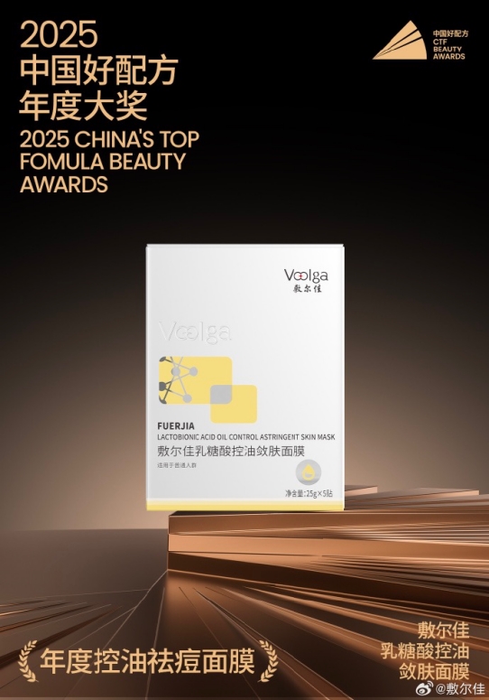 8月14-15日,由化妆品产业服务平台华妆会与全国工商联美容化妆品业商会化妆品化学师专业委员会联合主办的2025中国好配方年度盛典在杭州圆满举行。在这场汇聚国内外*专家、检测机构及行业权威的美妆盛事中,敷尔佳旗下两款明星产品——敷尔佳亮肤臻白面膜与敷尔佳乳糖酸控油敛肤面膜,分别斩获“年度美白面膜”与“年度控油祛痘面膜”两项重磅大奖,印证了敷尔佳在专业皮肤护理领域的硬核实力。