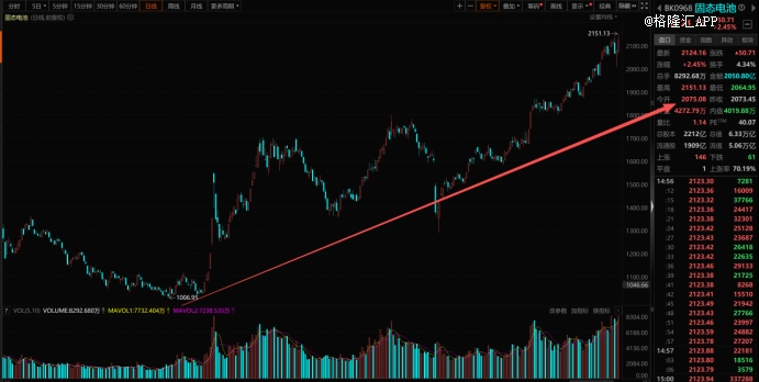 宁德时代此次盘中大涨14%,正是市场对其固态电池布局的认可。作为锂电龙头,宁德时代不仅在技术研发上领 先,更将固态电池量产时间锁定在2027-2030年,这种“龙头带头落地”的确定性,让资金看到了固态电池从“实验室”走向“产业化”的清晰路径——这与格隆汇研究院之前多次分析的“固态电池从题材走向产业现实”逻辑完全一致。