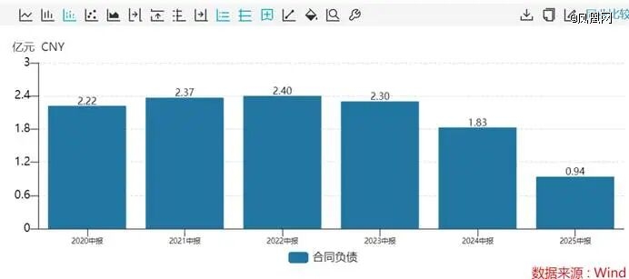 2025年6月末,太平鸟存货达15.20亿元,同比增长9.8%。不仅如此,太平鸟今年上半年的合同负债为0.94亿元,较去年同期下滑了48.56%,合同负债中最典型的是加盟商的预付款,去年上半年是加盟商预付款是1.2亿元,今年上半年已经骤降至5252.77万元,加盟商预付款越低,反映客户拿货意愿度越低迷。