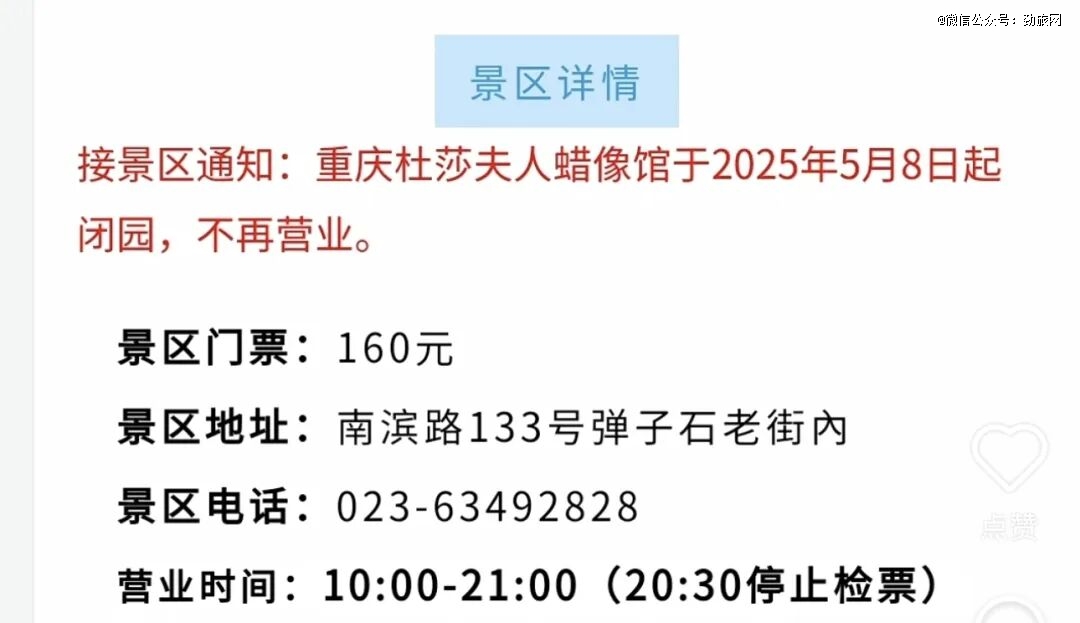 有业内人士向劲旅君透露,北京、重庆杜莎夫人蜡像馆相继倒闭,最重要的原因应该还是营收低迷,无法覆盖蜡像馆高昂维护成本。