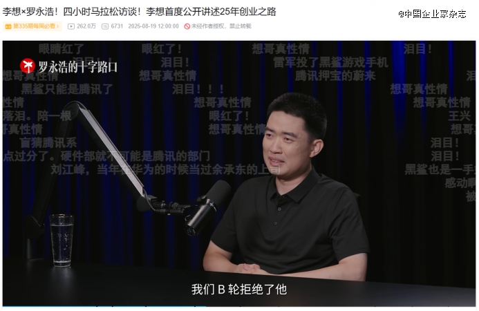 在《罗永浩的十字路口》里,他把自己放在了倾听者的角色,邀请不同领域的人物进行深度对话,聊科技、人文、世界格局、时代变迁以及人生抉择。目前节目已经上线三期,在长达3-5小时的马拉松访谈中,李想、何小鹏、何广智都展露了真实一面。