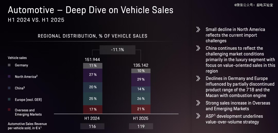 销量数据来看,保时捷在多个关键市场的销量都出现下滑,上半年,保时捷全球销量为14.64万辆,同比下滑8.8%,其中德国和中国市场出现大幅下滑,德国下滑23%,中国下滑28%,中国直接跌成第四大市场。