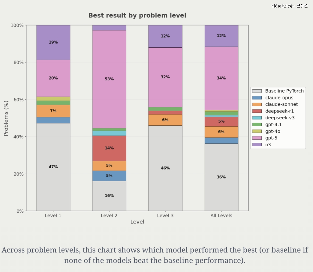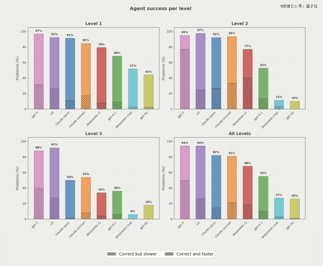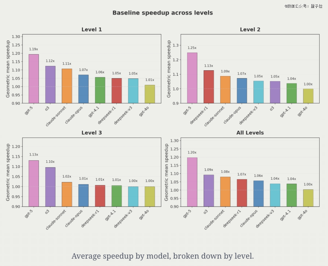 总体而言,GPT-5平均可以带来约20%的加速,其他模型则落后。