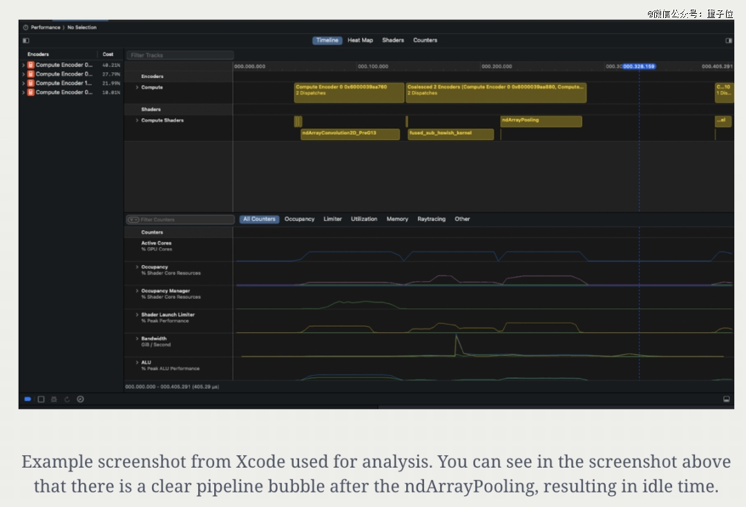 M4上gputrace 的性能分析信息。(包含Apple Script捕获的gputrace摘要、内存和时间线视图)