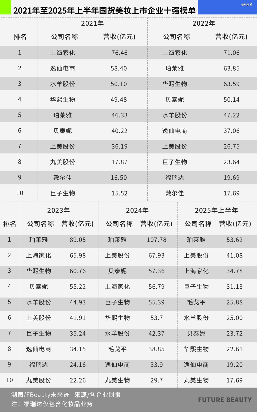 与此同时,随着各大国货美妆上市企业半年报的出炉,十 强榜单也随之揭晓。2025上半年国货美妆十 强财报,不仅是一张“谁卖得更好”的成绩单,更是一幅头部企业紧急谋变、寻找新活法的战略路线图。