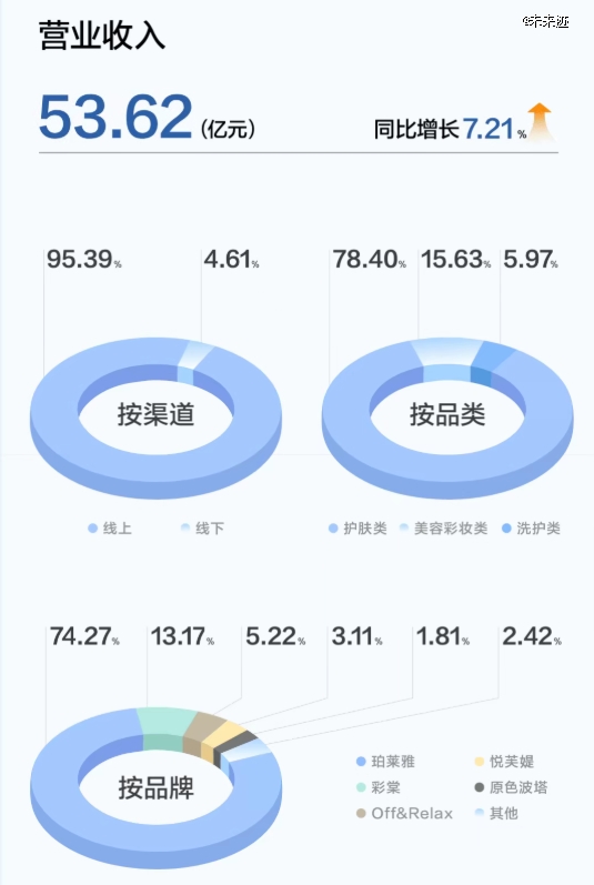就珀莱雅来看,除了占比最高的护肤品类,其洗护类增速高达131.25%,美容彩妆类增速达 25.79%,成为驱动营收增长的重要力量。