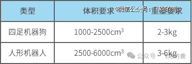 重量方面要尽量轻,人形机器人可以稍微重一些。