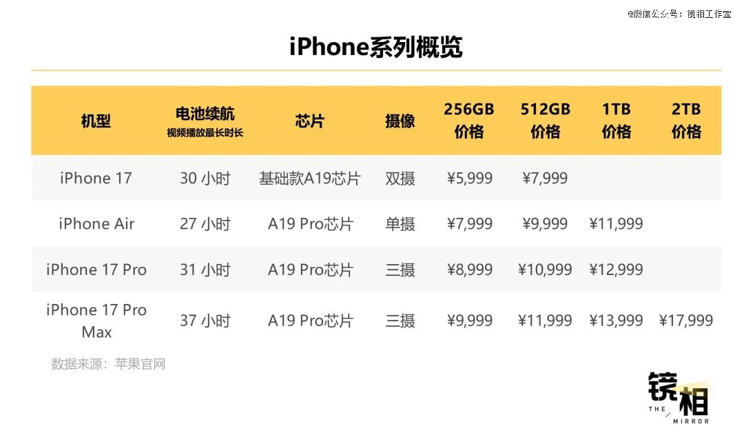 从命名就可以看出,苹果对 iPhone Air 的定位与 MacBook Air 对标:更薄、更轻、更畅销。