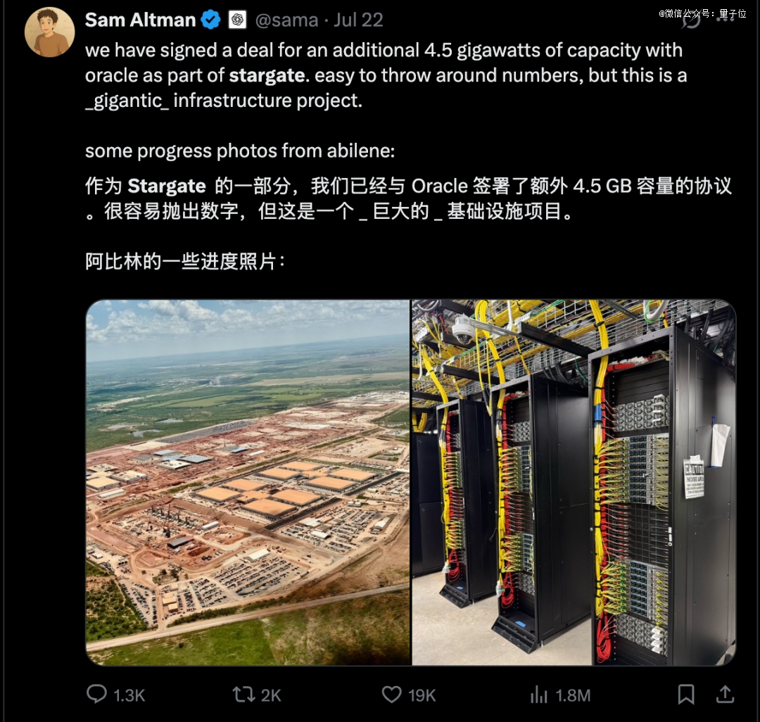 其实,奥特曼在7月也曾宣布与甲骨文达成4.5吉瓦的数据中心协议,不过当时并未透露合同总额和更多细节。