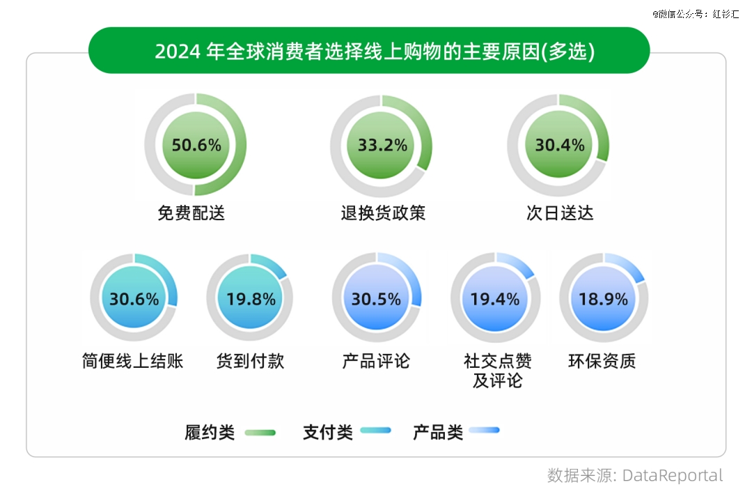 随着消费者需求愈发旺盛,履约体验高度影响网购消费者决策。全球数字营销分析机构DataReportal调研显示,履约、产品和支付体验是驱动消费者线上购买的关键因素。其中,50.6%的消费者选择“免费配送”,33.2%的消费者选择“退换货政策”,30.4%的消费者选择“次日达”,这说明低成本配送、快速履约能力和可靠售后保障,是构建消费者忠诚度的核心,供应链起到的作用不言而喻。