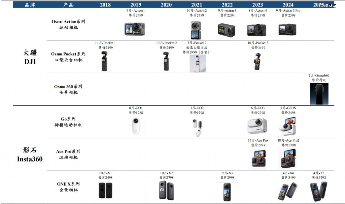 图:影石与大疆主要产品分布对比 数据来源:信达证券,36氪整理