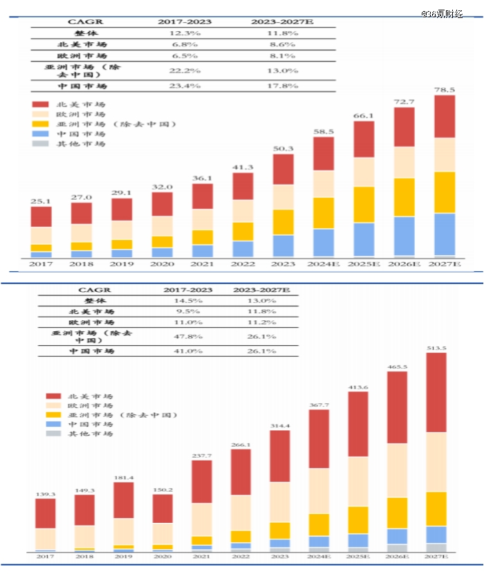 图:全球全景相机和运动相机分区域增长对比 数据来源:国盛证券,36氪整理