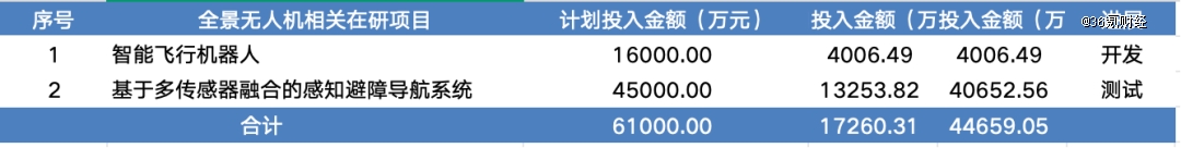 图:公司无人机相关在研项目及投入 数据来源:公司半年报,36氪整理