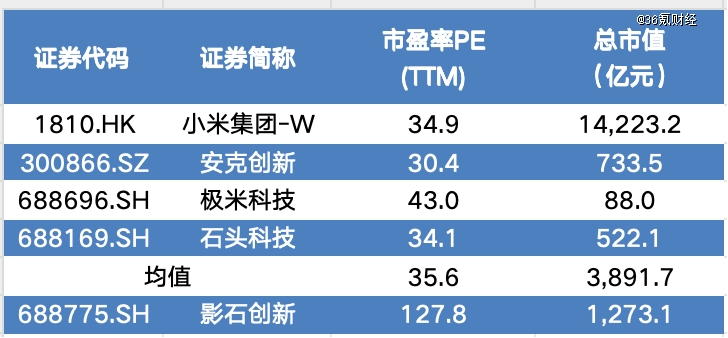 图:影石创新估值与同业对比 数据来源:wind,36氪整理