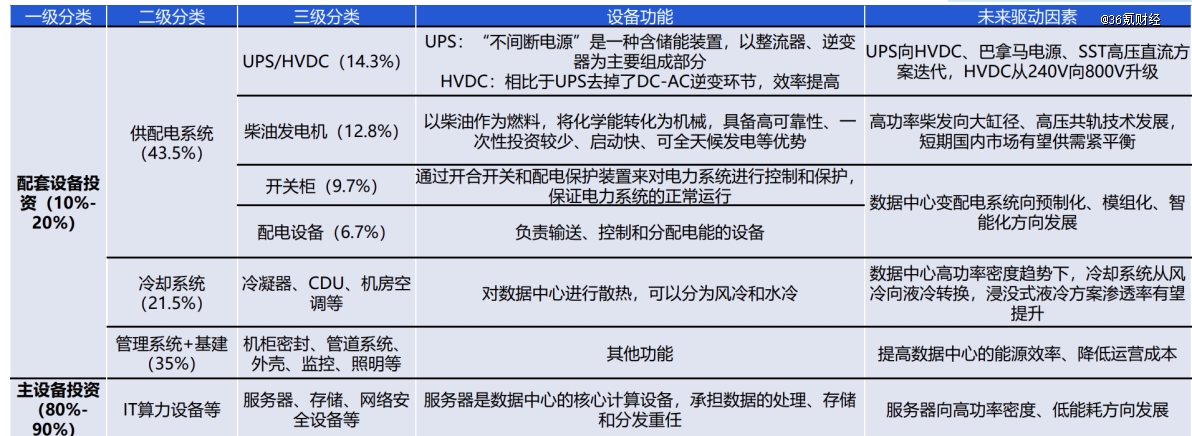 图:数据中心设备开支构成 资料来源:国海证券,36氪整理