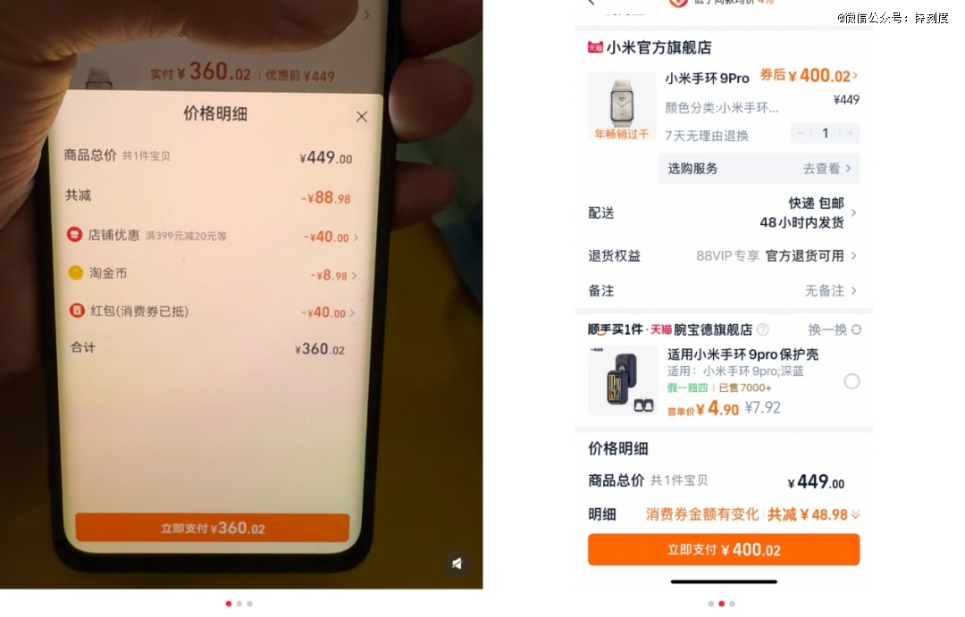 也正因此,当各大平台的会员权益被质疑“杀熟”时,则也劝退了许多潜在会员,或让许多会员不再续费。其中以88VIP为例,在社交平台上,有不少消费者晒出对比,“同一款产品,88VIP账户的实付款,比普通用户的实付款高”,比如一款小米手环,88VIP账户的实付款为400.02元,而普通用户仅需支付360.87元。同样的情况也出现在京东上,有网友发现,自己用京东plus会员账号购买同一款洗发水,价格为44.33元,而普通会员账号为32元。