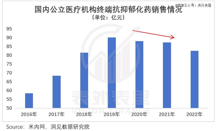 “心灵感冒”持续蔓延、入局药企前赴后继,但国内公立医院抗抑郁药物的销售额,却一度踩了急刹车。