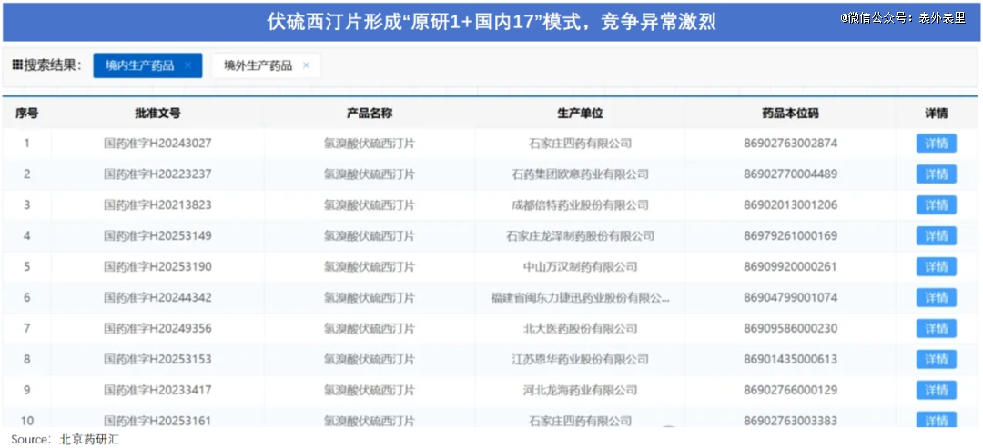 例如,2018年舍曲林主要仿制药企仅有三家,如今涨至十余家;“年轻”的氢溴酸伏硫西汀(心达悦),更是群狼环伺,仅今年便有9家仿制药企入局。