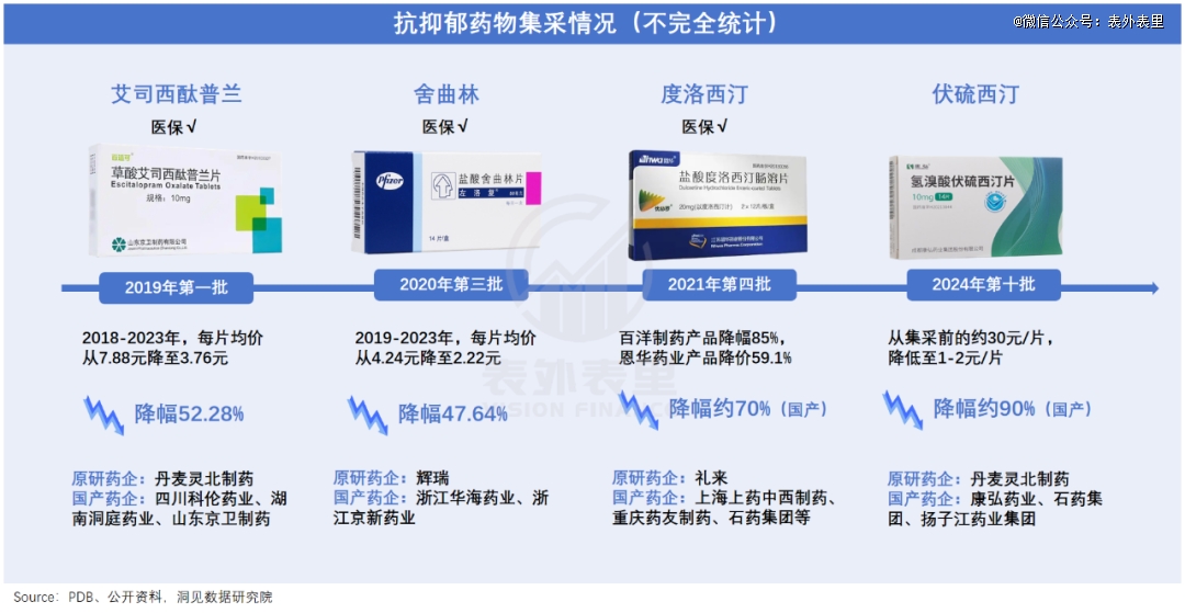 为此,曾经高高在上的原研药,也被迫挤出价格水分、低头迎战。“这也抗抑郁药用药量增加,但市场销售额却下滑的原因。”大雷解释道。