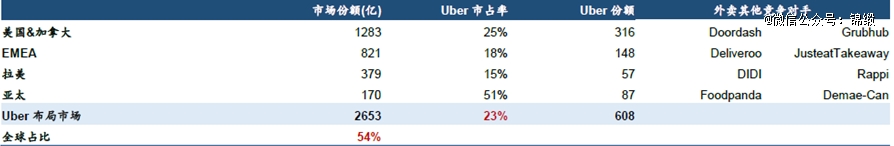 图:Uber外卖市场全球布局 资料来源:Uber公告,华泰证券