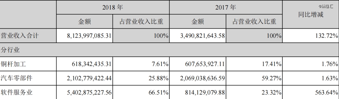 但此时,铜杆加工业务和汽车零部件加工业务仍旧贡献了总营收的80%。