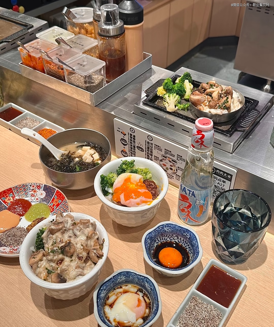 而日式米饭不可或缺的就是“鸡蛋”,门店会根据顾客接受程度提供温泉蛋和无菌蛋两种,可以同米饭和汉堡肉一起搭配拌饭食用。