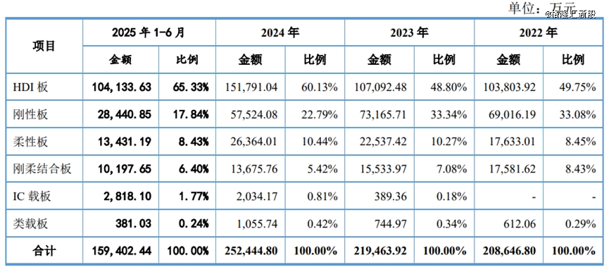 具体来看,2022年至2025年上半年,红板科技来自HDI板的营收占比从49.75%提升至65.33%;刚性板的营收占比从33.08%降至17.84%。