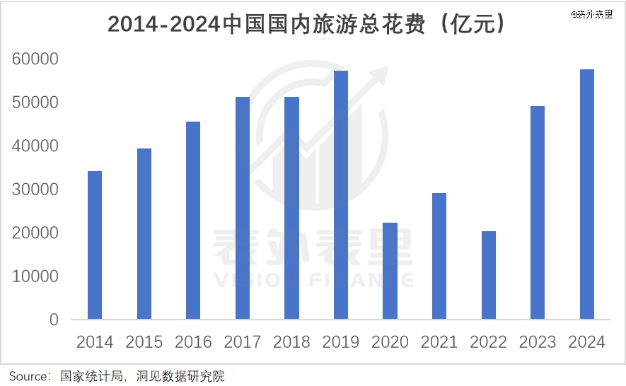 而与此同时,旅游业却是需求大爆发,尤其是疫情后,像坐火箭一样节节蹿升。可以看到,2024年国内旅游人数以及旅游总花费规模,再次双双创新高。