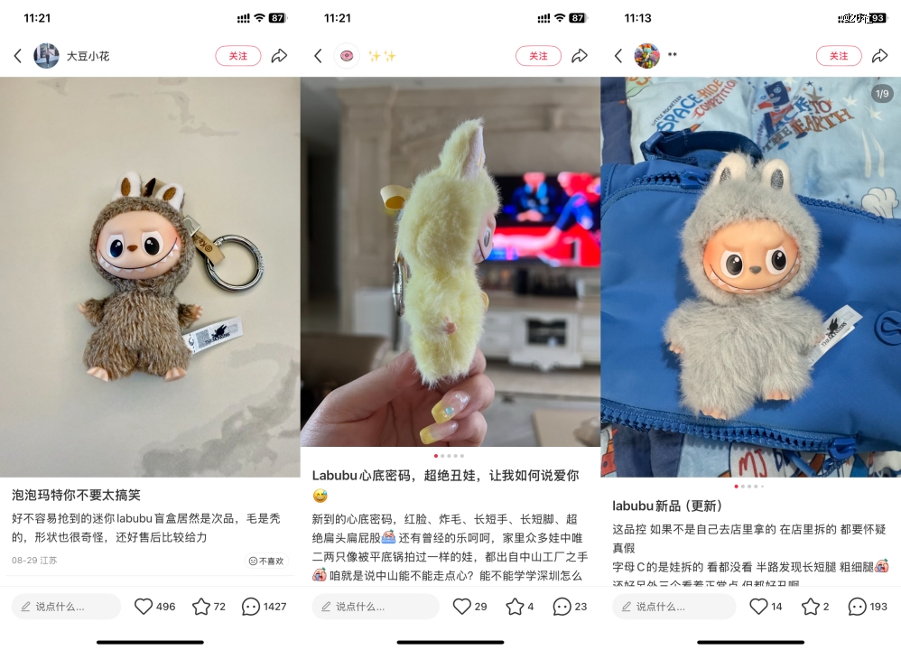 对于一直在买Labubu的老粉丝来说,她们对Labubu的态度反而在回归玩具的本质:再怎么着,这就是个原价几十块钱的玩偶。