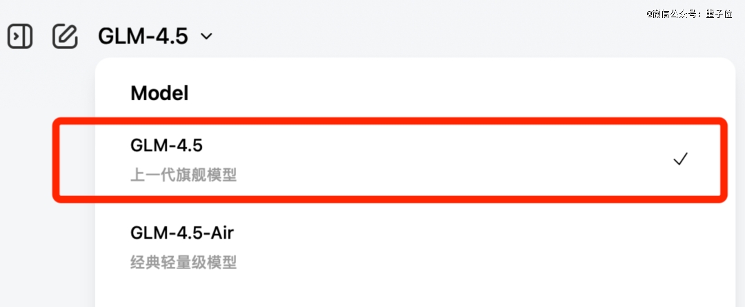 从下拉菜单可以看到,他们已经把GLM-4.5标成了“上一代旗舰模型”。
