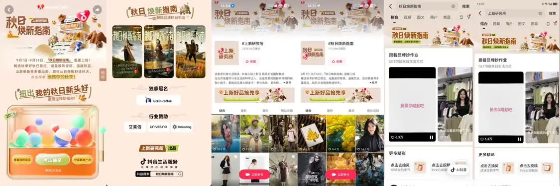 基于三大趋势洞察,“抖音心动上新日·上新研究所”重磅推出「秋日焕新指南」特别企划,集结服饰、热饮、出游场景品类好物,为今秋潮尚生活提供一站式焕新解决方案,助力消费者从容换季,悦享秋日生活。