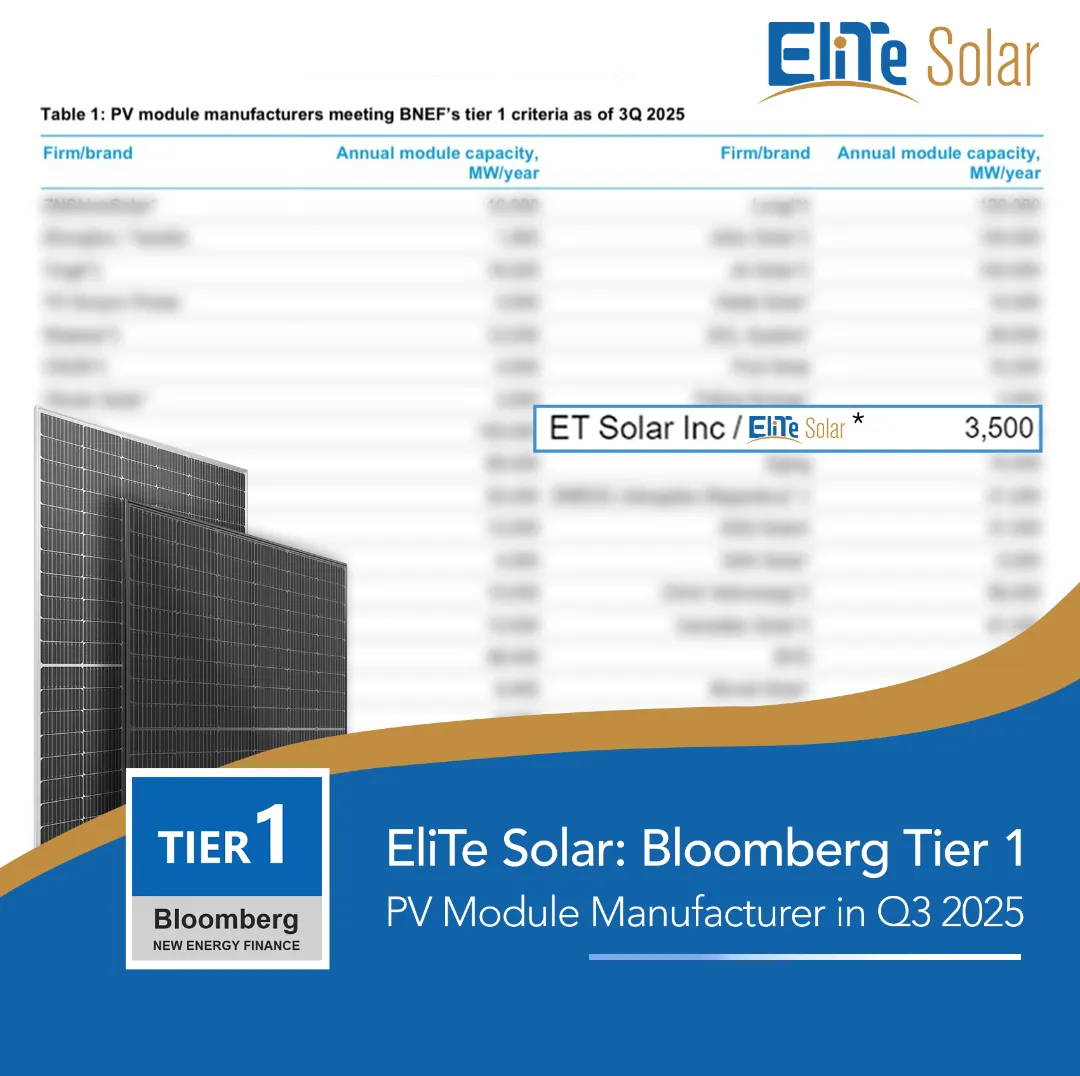 在彭博新能源财经(BloombergNEF)最新公布的2025年第三季度Tier 1光伏组件制造商名单中,博达新能 EliTe Solar再次稳居榜单。