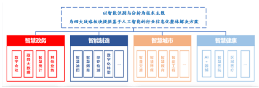 公司当前以高速机器视觉、大数据为核心技术,在智慧政务、智能制造、智慧城市、智慧健康领域,面向政府、烟草、油气、医疗、特种印刷等行业提供信息化整体解决方案、智能化工程和相关产品与服务。公司主营业务是以智能识别及分析技术为核心,主要应用在现场会议领域、烟草领域、印钞检测领域、油气领域、政府及其他领域。