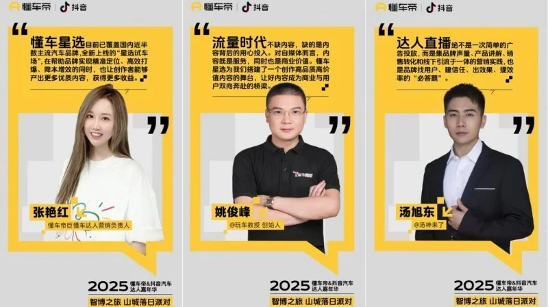 随着用户线上内容消费和选买决策行为占比提升,达人内容在为品牌种草、帮助用户选买决策方面发挥着越来越重要的价值。9月4日,2025懂车帝&抖音汽车达人嘉年华智博之旅山城落日派对在重庆南川金佛山金山湖畔露营基地举行,懂车帝巨懂车相关负责人、主流车企代表以及头部汽车达人交流分享了对于构建平台、品牌、达人、用户内容营销生态的经验与思考,从多维视角深入探讨汽车达人营销的未来。