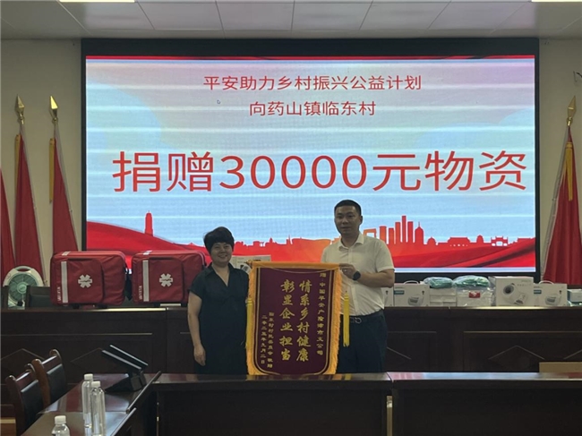 为积极响应国家乡村振兴战略,助力提升乡村医疗卫生服务水平,中国平安财产保险股份有限公司津市支公司于9月2日在津市市药山镇临东村开展“平安助力乡村振兴公益计划——津市市临东村医疗健康下乡行动”。此次活动旨在通过捐赠医疗物资,守护村民健康,彰显企业社会责任。